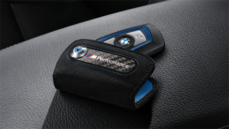 L'expérience sportivité jusqu'au dernier détail. Dès que vous poserez les yeux sur le cas, vous remarquerez la clé BMW M Performance , qu'elle respire la passion pure du sport automobile. Fait de haute qualité Alcantara noir, il a des coutures décoratives bleu et une application carbone-look performances . L'étui protège votre clé BMW des égratignures et de la saleté et empêche les clés d'être pressé par inadvertance. La clé peut être tordue de l'affaire facilement, ce qui signifie qu'il est toujours prêt à l'emploi en un instant.